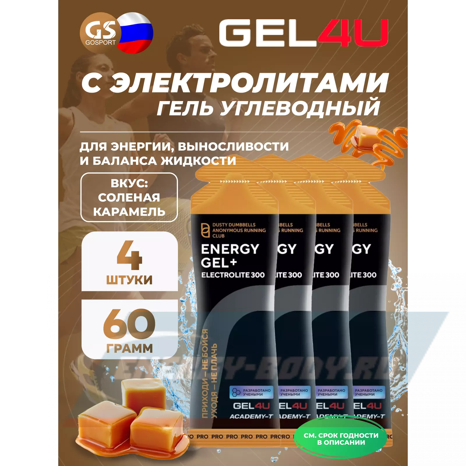 GEL4U Energy GEL + Electrolyte 300 4 x 60 г, Соленая карамель — Энергия, выносливость и баланс жидкости