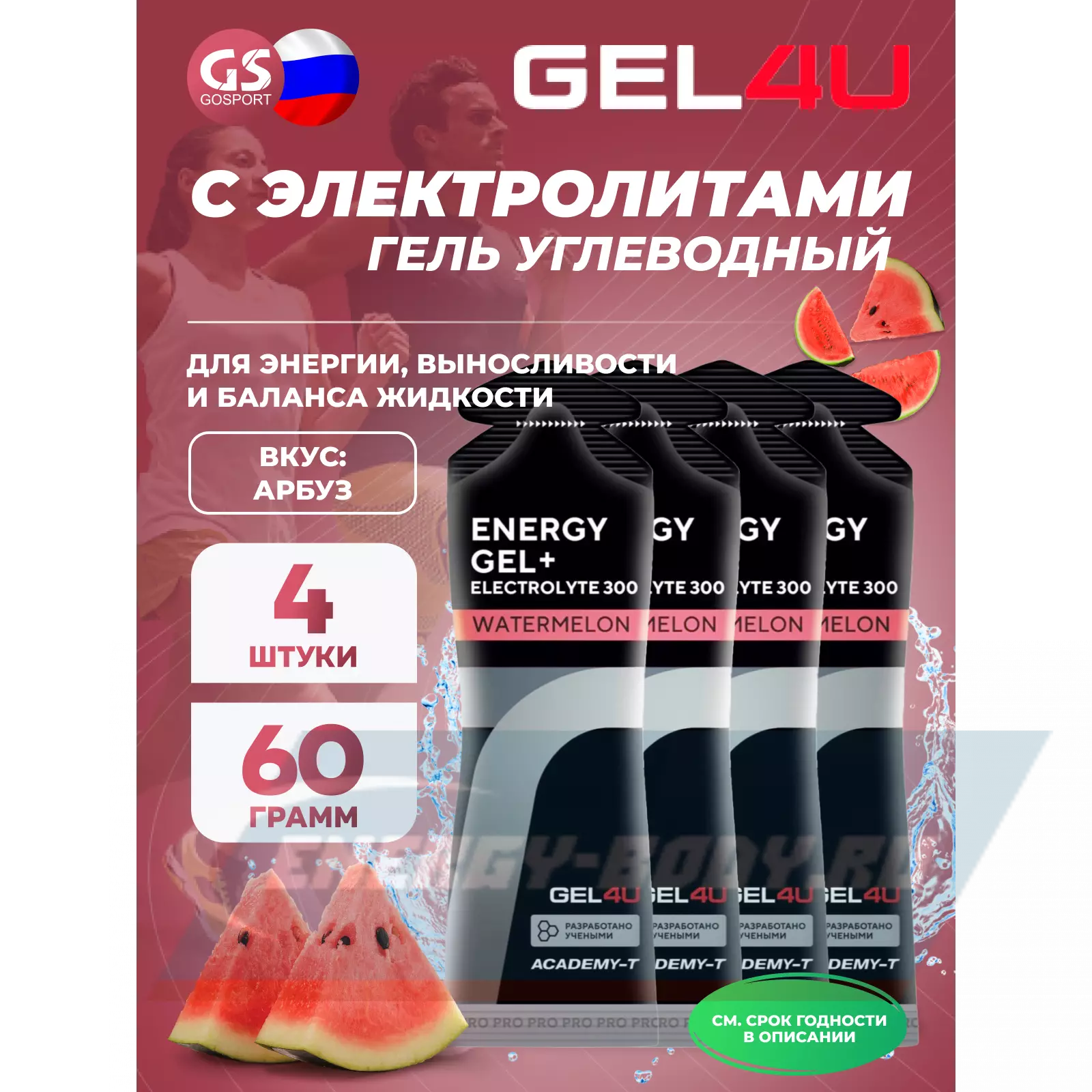 GEL4U Energy GEL + Electrolyte 300 4 x 60 г, Арбуз — Энергия, выносливость и баланс жидкости