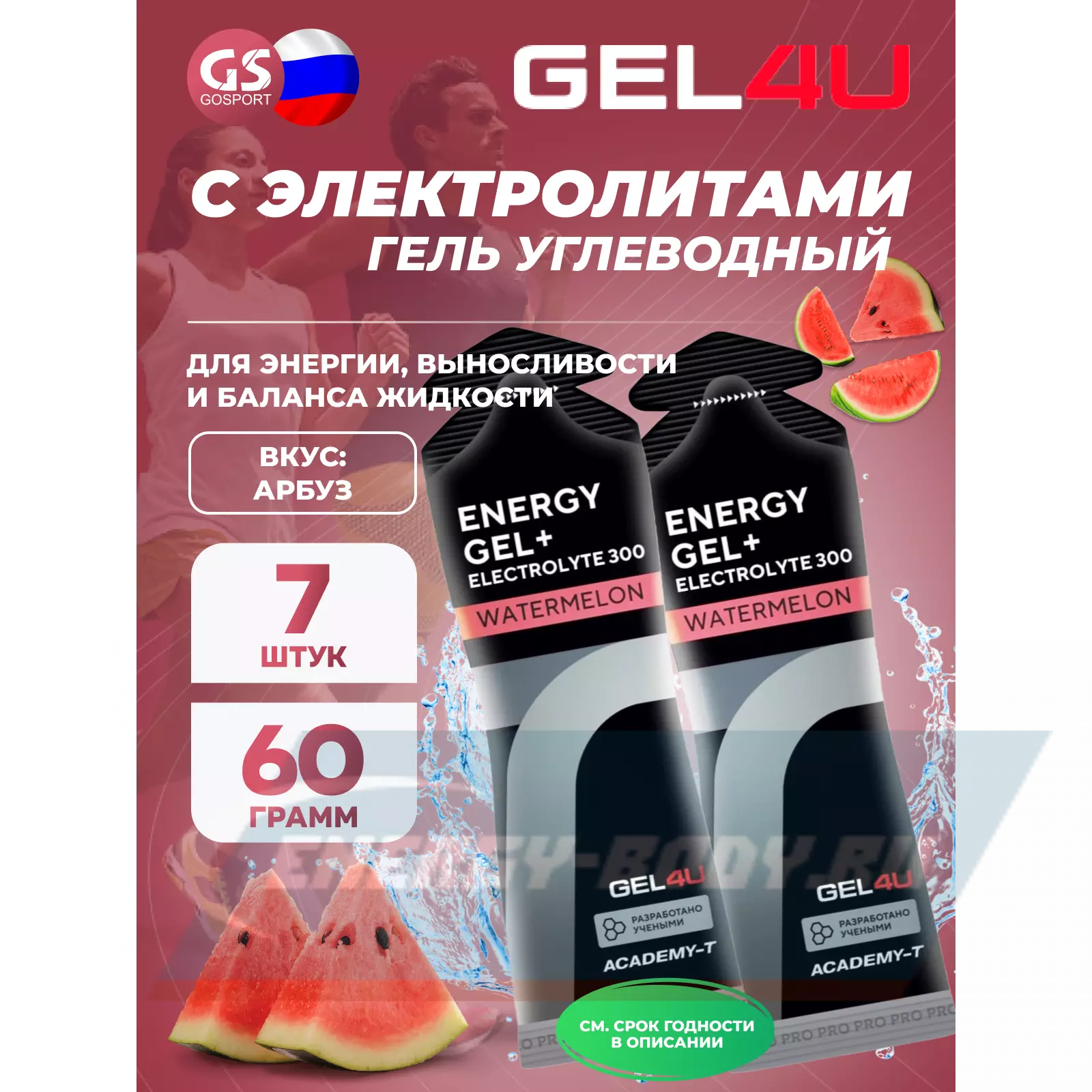 GEL4U Energy GEL + Electrolyte 300 7 x 60 г, Арбуз — Энергия, выносливость и баланс жидкости