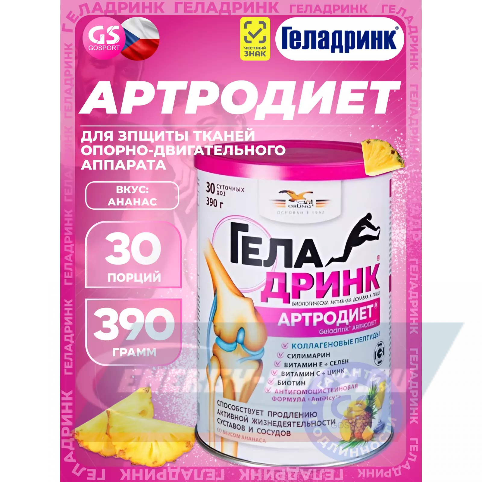 ГЕЛАДРИНК Артродиет (Geladrink Artrodiet) 390 г, Ананас — Для суставов и опорно-двигательного аппарата