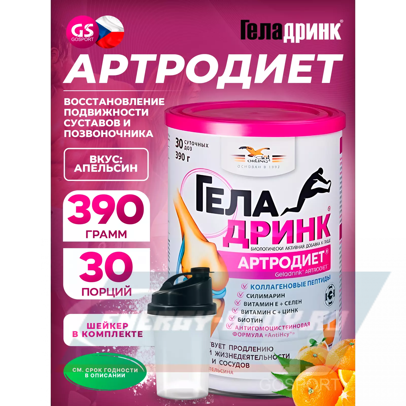 ГЕЛАДРИНК Артродиет (Geladrink Artrodiet) + Шейкер 390 г + шейкер, Апельсин — Для суставов и опорно-двигательного аппарата