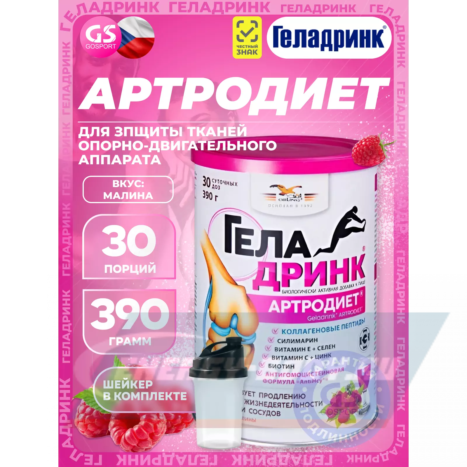 ГЕЛАДРИНК Артродиет (Geladrink Artrodiet) + Шейкер 390 г + шейкер, Малина — Для суставов и опорно-двигательного аппарата