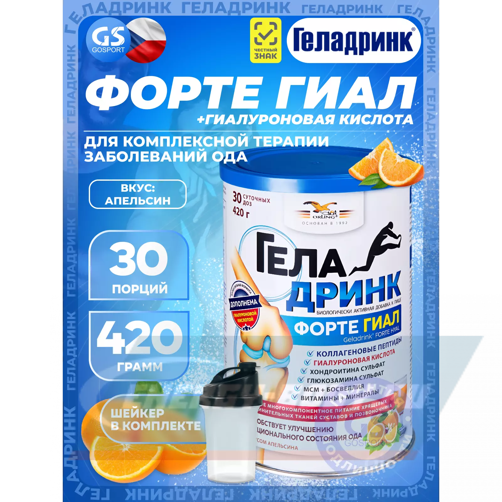 ГЕЛАДРИНК ФОРТЕ (Geladrink Forte) ГИАЛ + Шейкер 420 г + шейкер, Апельсин — Для подвижности и гибкости суставов