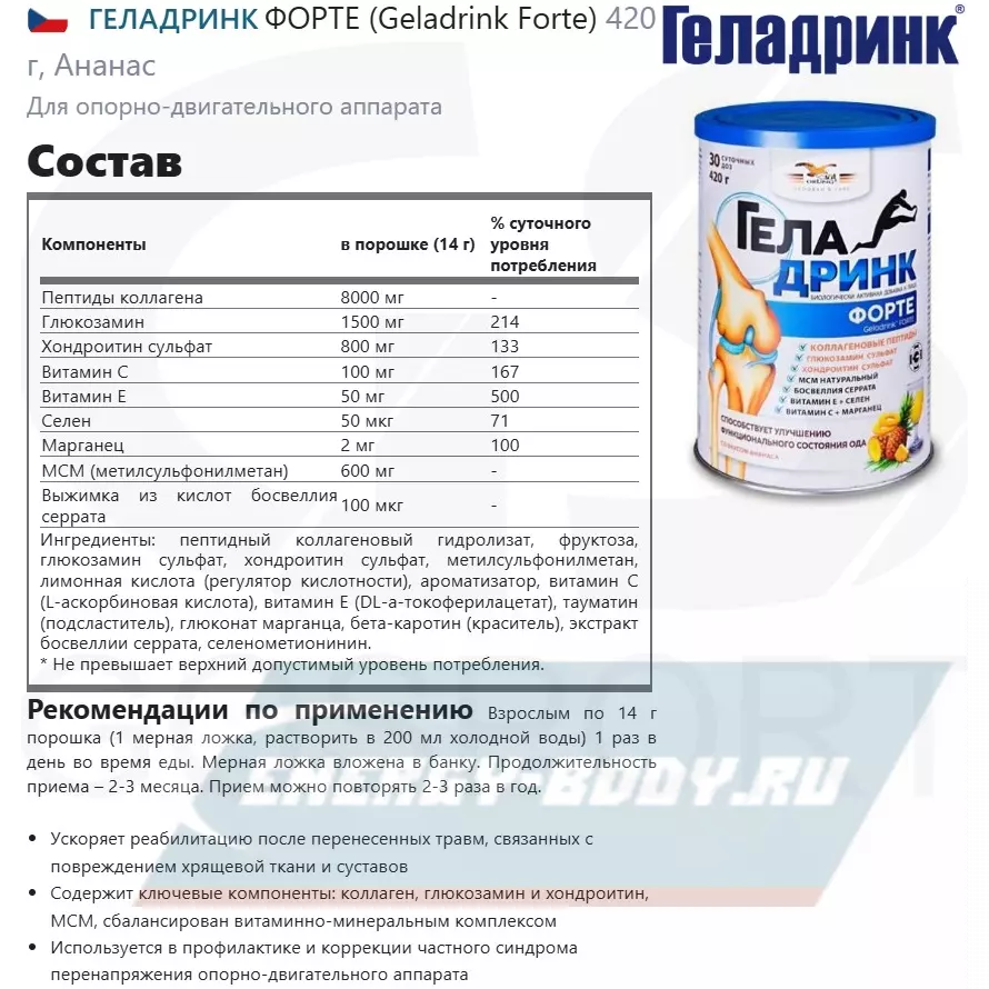 - Полное описание ФОРТЕ (Geladrink Forte)