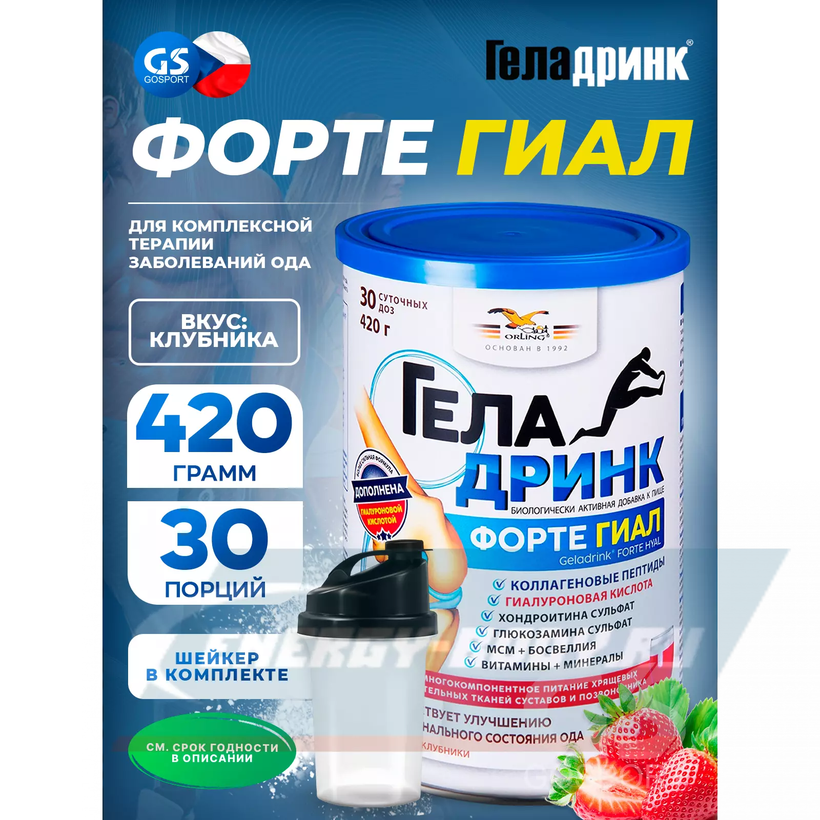 ГЕЛАДРИНК ФОРТЕ (Geladrink Forte) ГИАЛ + Шейкер 420 г + шейкер, Клубника — Для подвижности и гибкости суставов