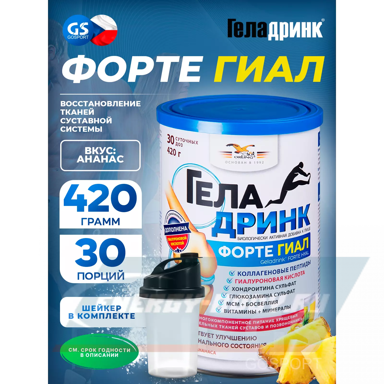 ГЕЛАДРИНК ФОРТЕ (Geladrink Forte) ГИАЛ + Шейкер 420 г + шейкер, Ананас — Для подвижности и гибкости суставов