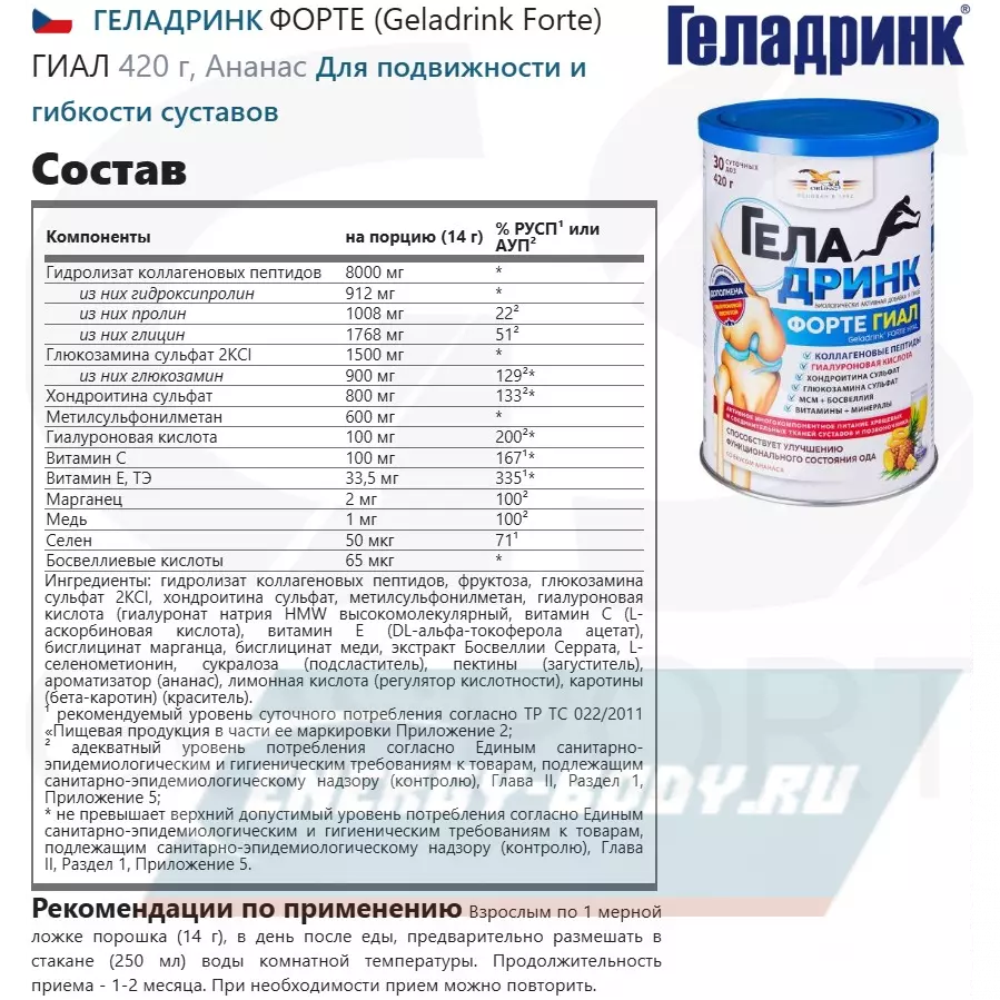 Состав ГЕЛАДРИНК ФОРТЕ (Geladrink Forte) ГИАЛ