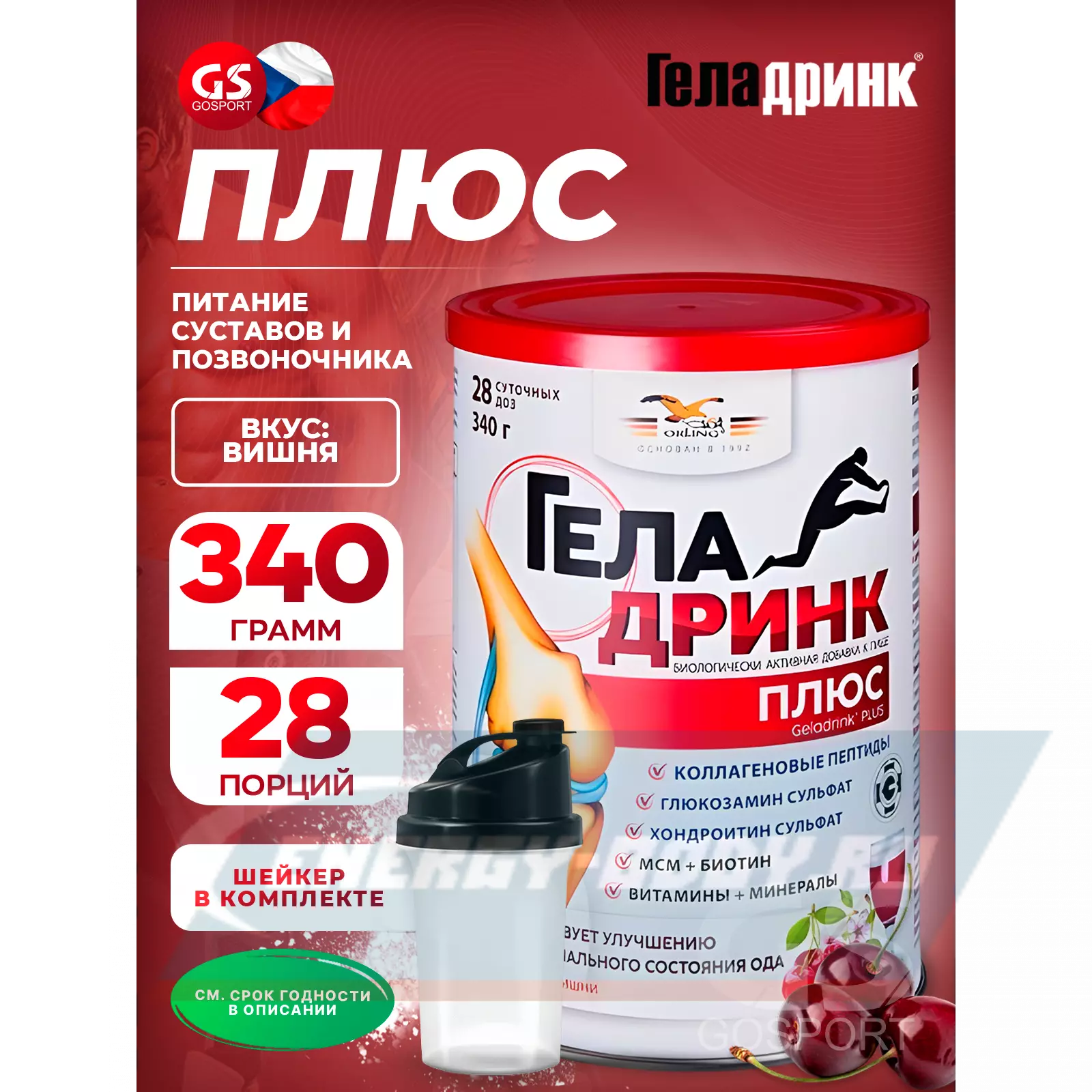 ГЕЛАДРИНК Плюс (Geladrink Plus) + Шейкер 340 г + шейкер, Вишня — Для опорно-двигательного аппарата