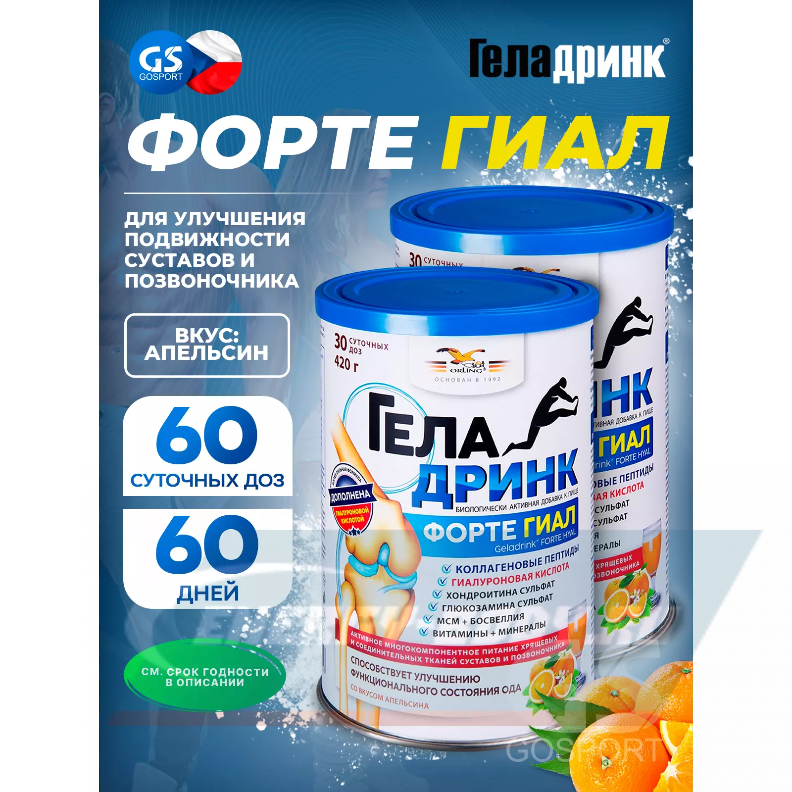 ГЕЛАДРИНК ФОРТЕ (Geladrink Forte) 2 х 420 г, Апельсин — Для подвижности и гибкости суставов