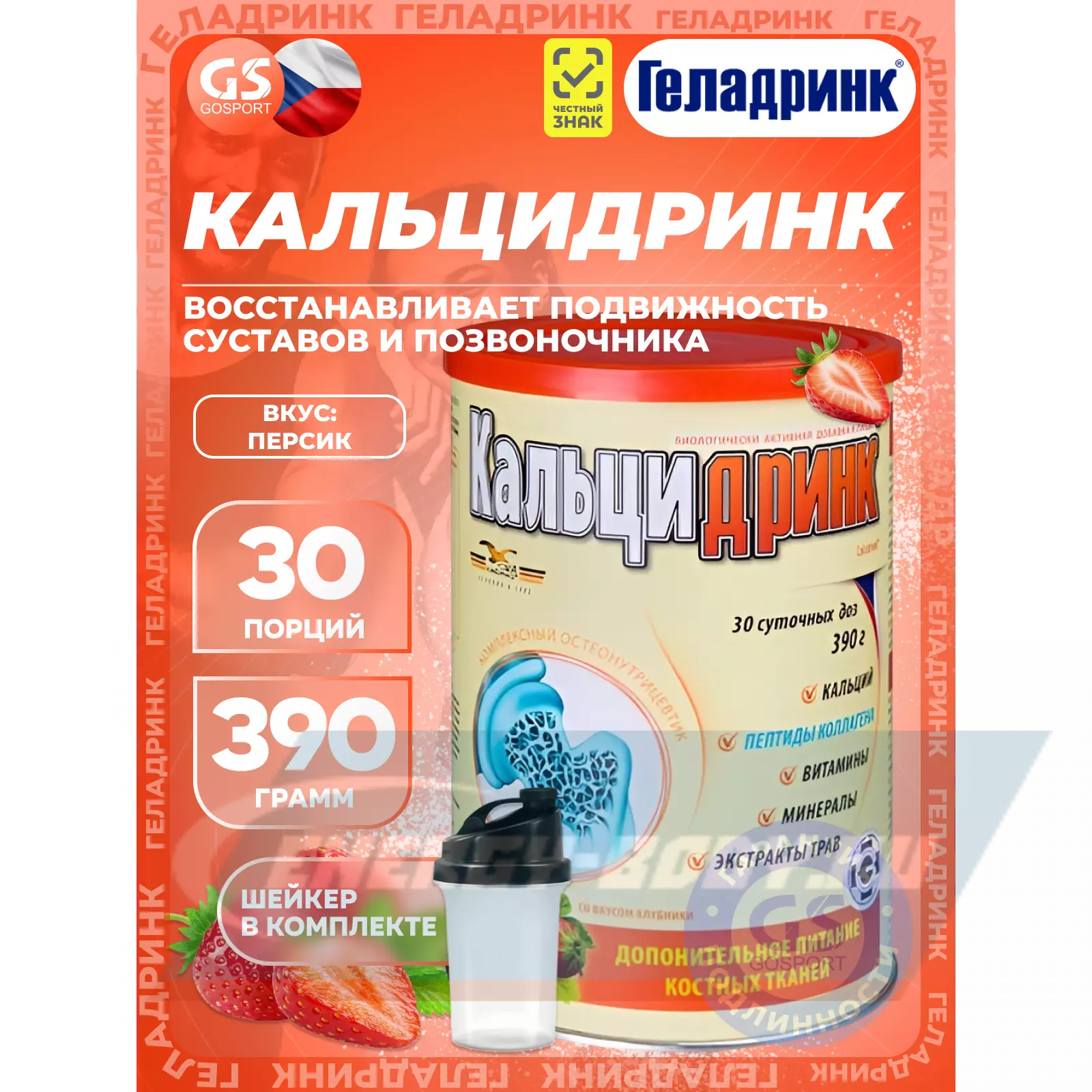 ГЕЛАДРИНК Кальцидринк (CALCIDRINK) + Шейкер 390 г + шейкер, Клубника — Для здоровья костей