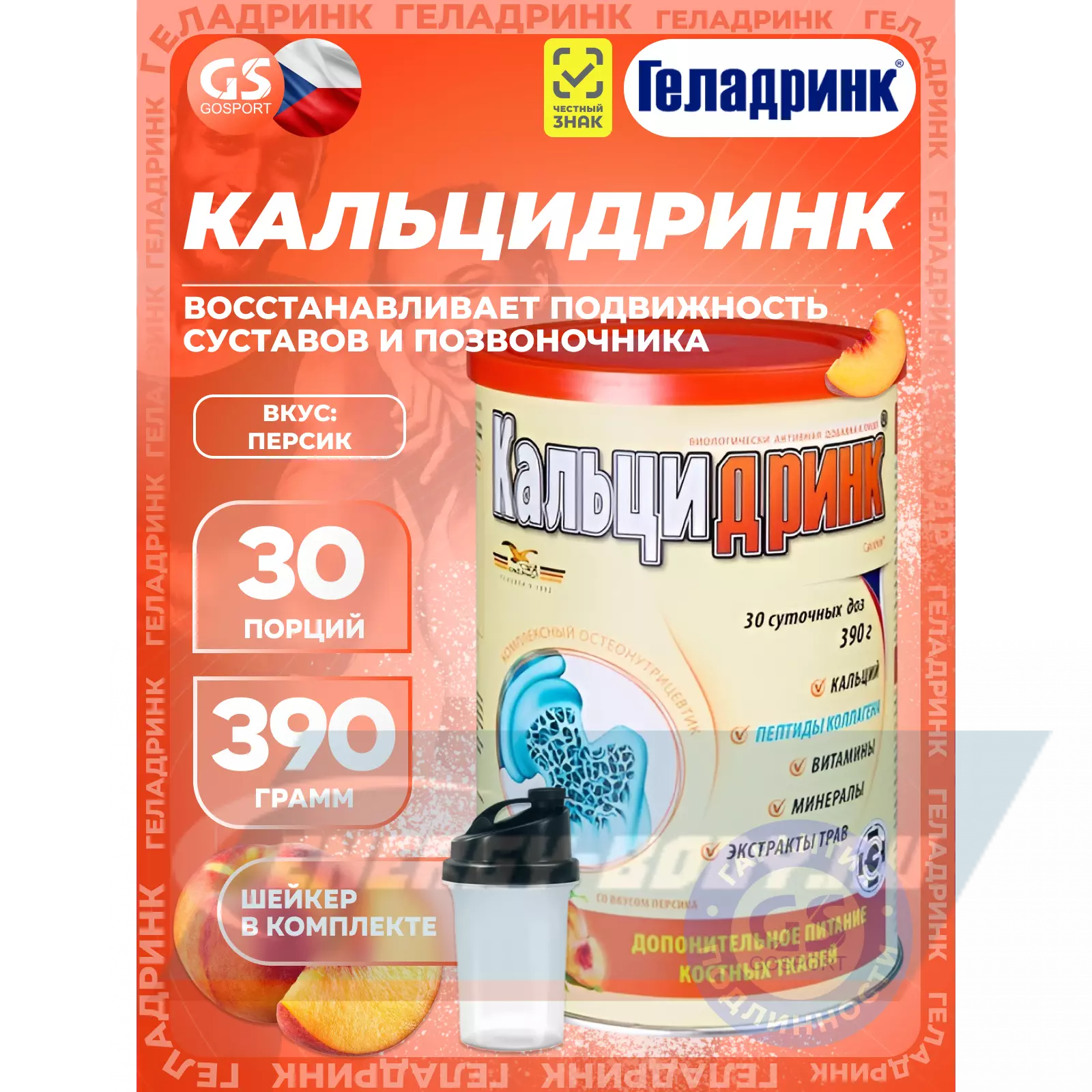 ГЕЛАДРИНК Кальцидринк (CALCIDRINK) + Шейкер 390 г + шейкер, Персик — Для здоровья костей