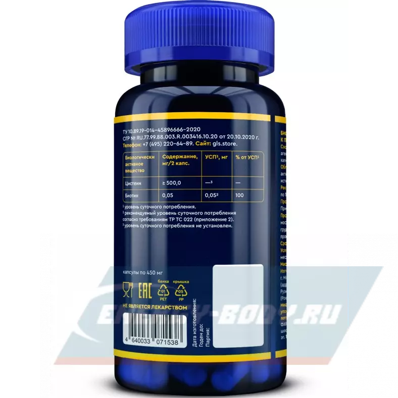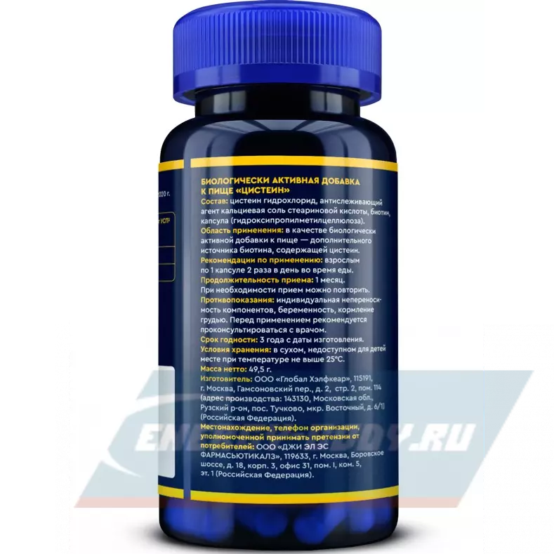 Ингредиенты: цистеин гидрохлорид, антислеживающий агент кальциевая соль стеариновой кислоты, антиокислитель аскорбиновая кислота, D-биотин, капсула (гидроксипропилметилцеллюлоза).