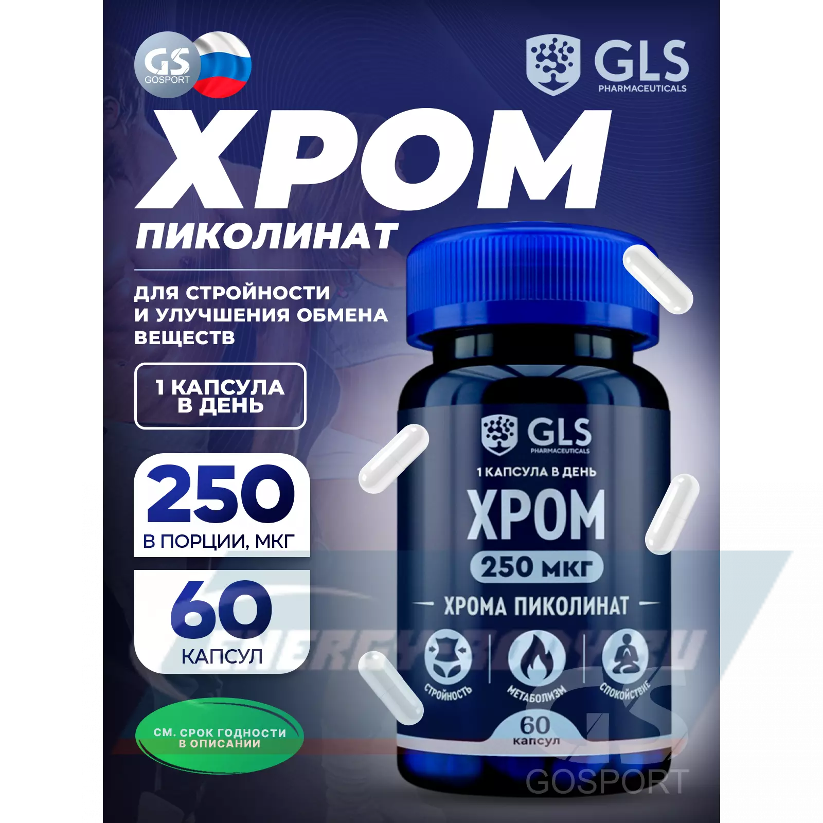 GLS pharmaceuticals Хром 250 мкг 60 капсул — для снижения веса, контроля аппетита и щитовидной железы