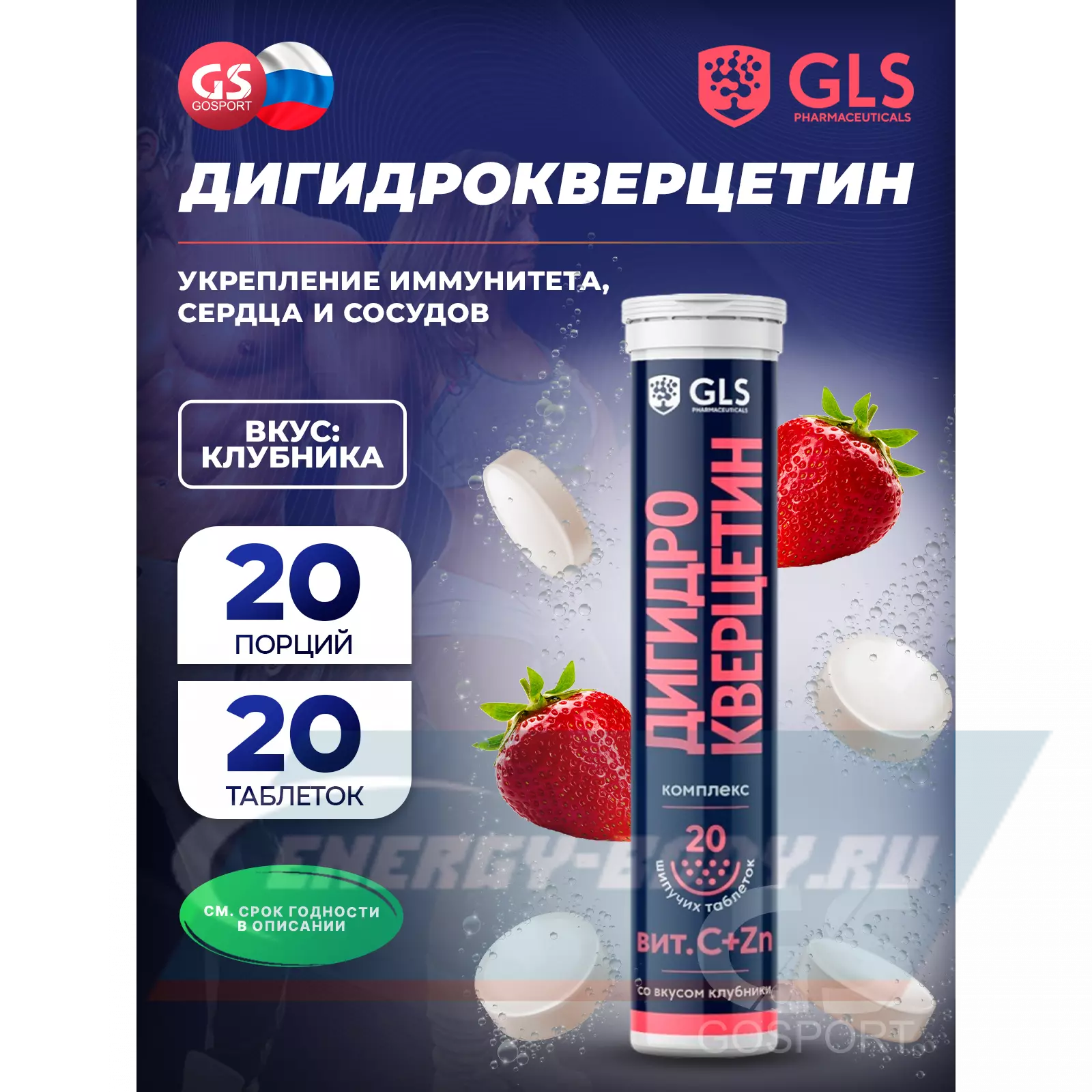 GLS pharmaceuticals Дигидрокверцетин 20 шипучих таблеток, Клубника — Для сердца, сосудов и иммунитета