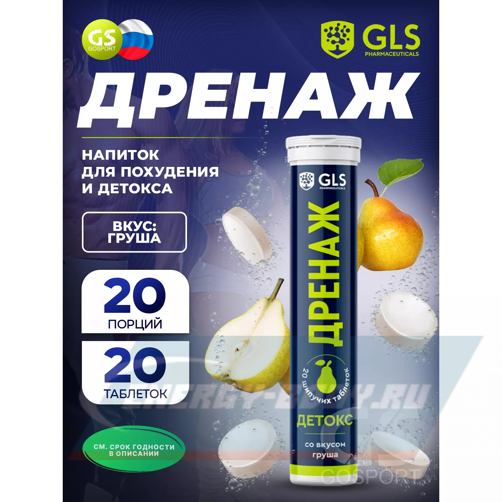 GLS pharmaceuticals Дренаж 20 шипучих таблеток, Груша — для детокса, жиросжигания и энергии