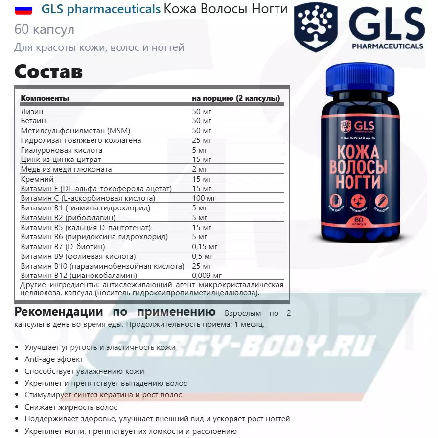Состав GLS pharmaceuticals Кожа Волосы Ногти