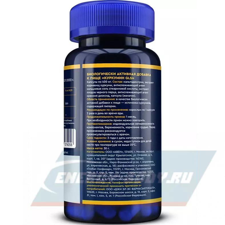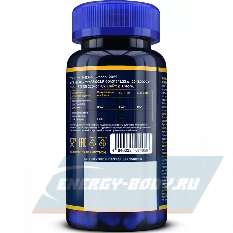 Состав GLS pharmaceuticals Куркумин 150 мг с пиперином