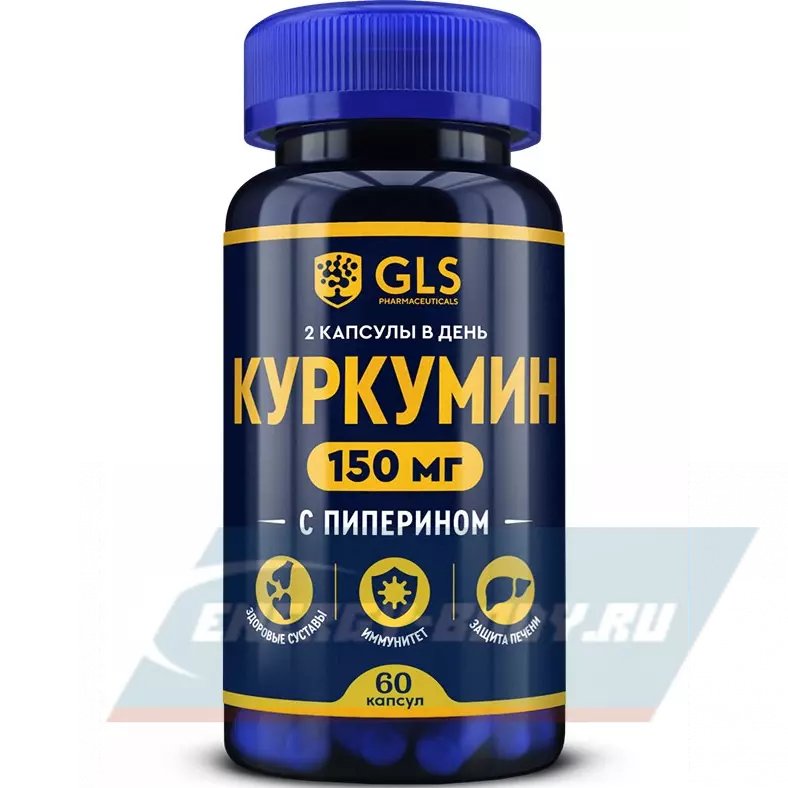 GLS pharmaceuticals Куркумин 150 мг с пиперином 60 капсул — Для суставов, иммунитета и печени