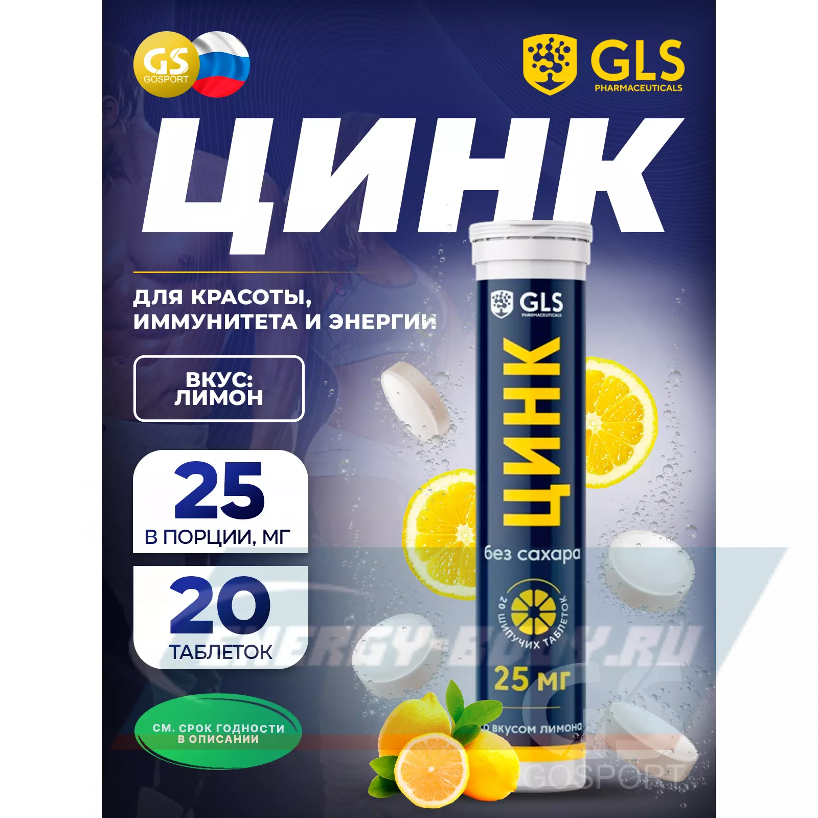 GLS pharmaceuticals Цинк 25 мг, без сахара 20 шипучих таблеток, Лимон — Для иммунитета, волос, кожи и ногтей