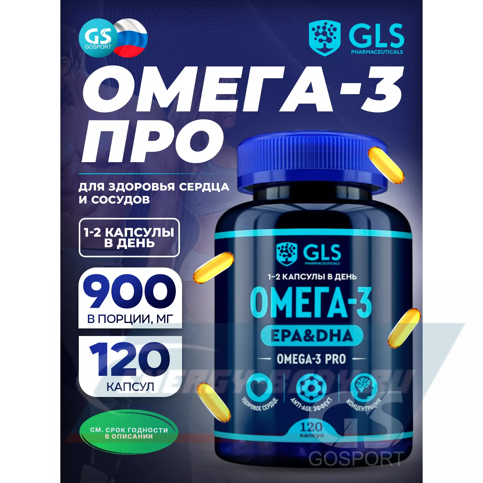 GLS pharmaceuticals Омега-3 120 капсул — для сердца, молодости кожи и иммунитета