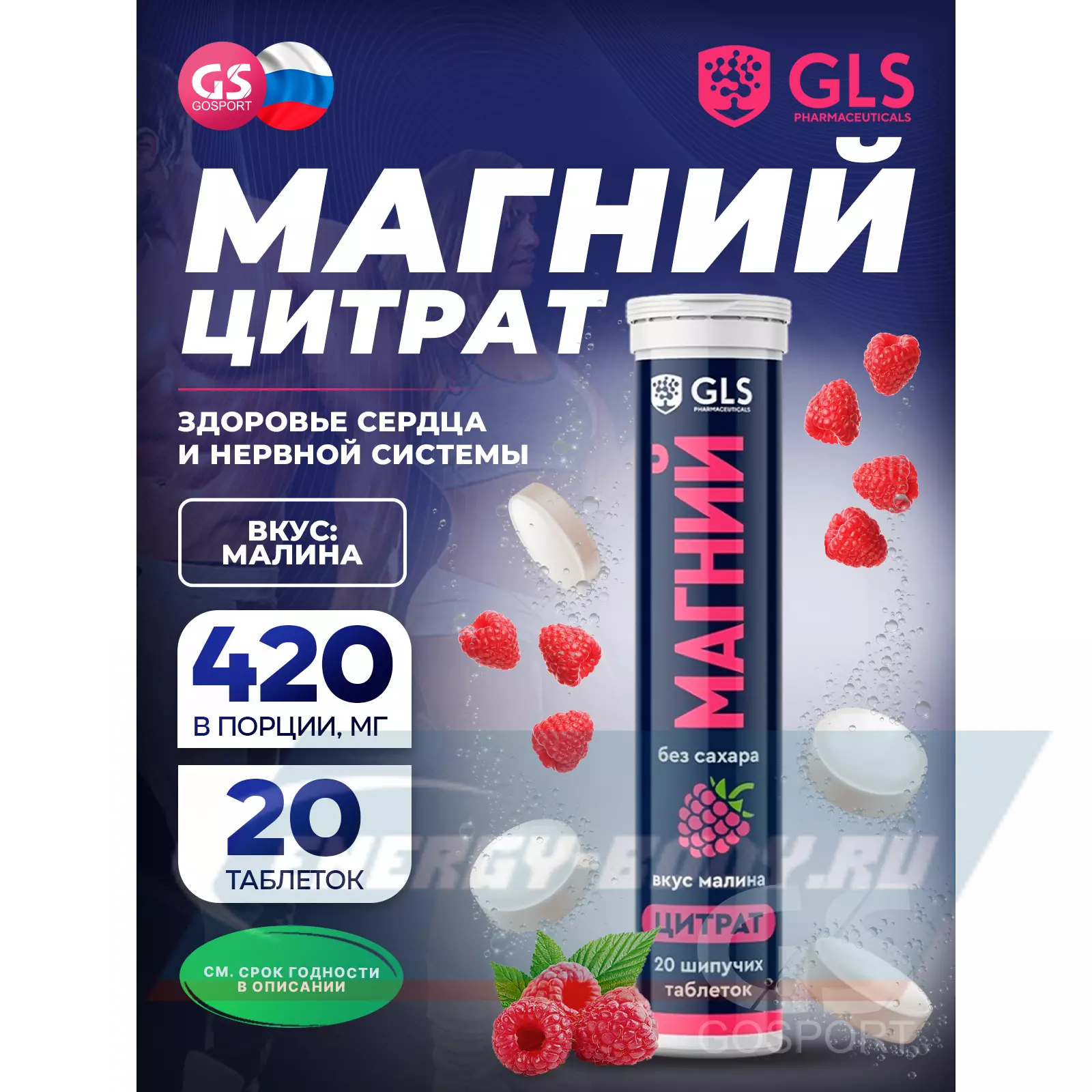 GLS pharmaceuticals Магний цитрат, без сахара 20 шипучих таблеток, Малина — Для сна, мышц и снижения стресса
