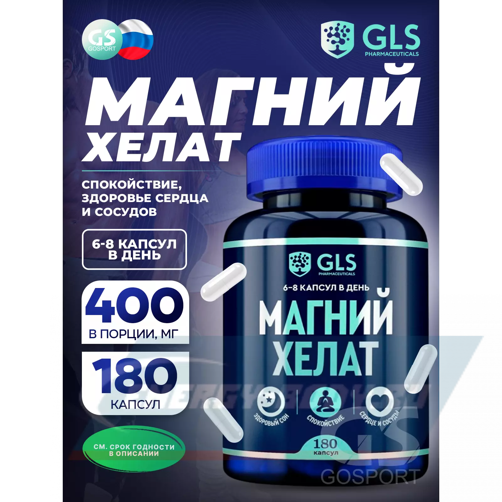 GLS pharmaceuticals Магний хелат 400 мг с витамином B6 180 капсул — Для спокойствия, сна, сердца и сосудов