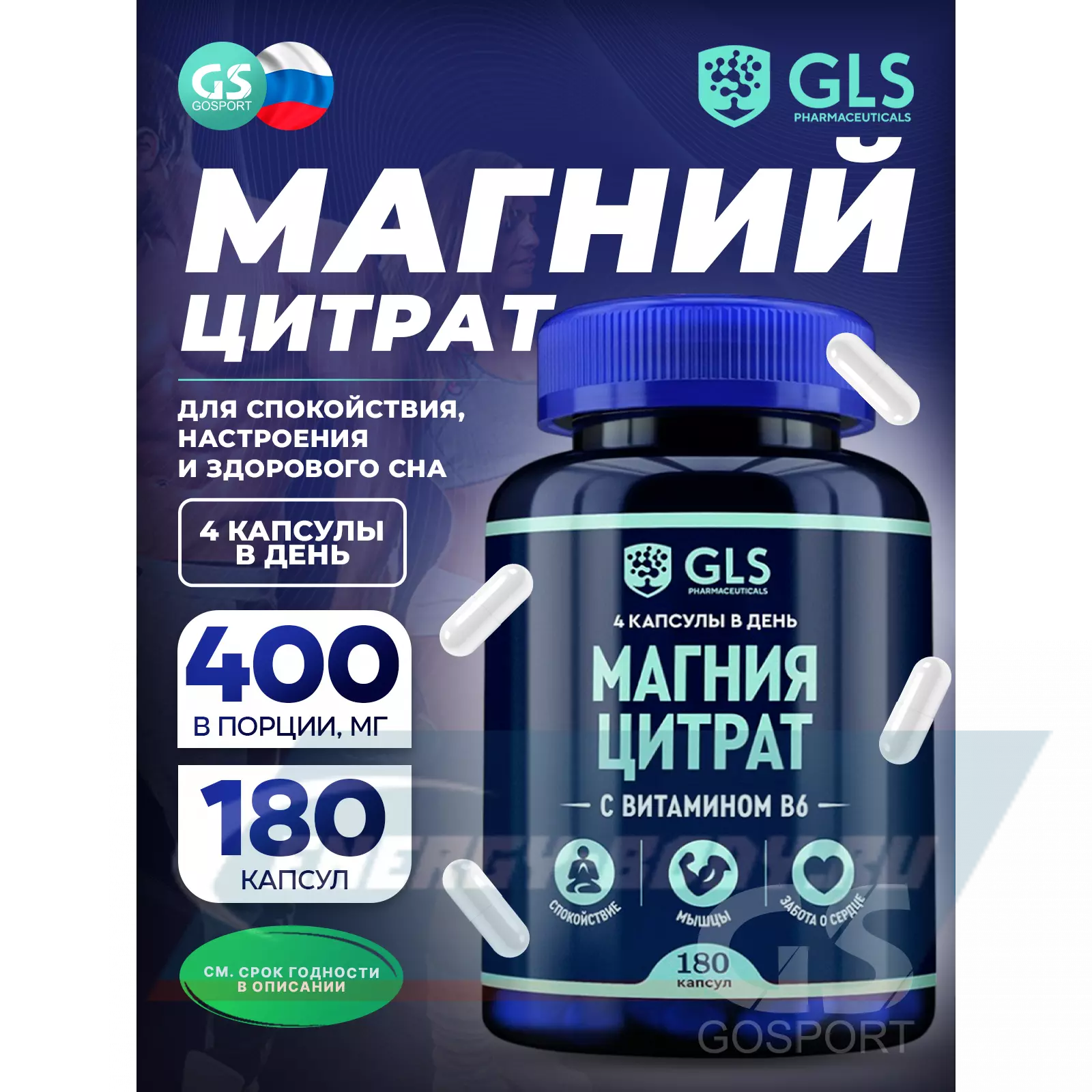 GLS pharmaceuticals Магния цитрат с витамином В6 180 капсул — Для нервной системы, сна и снижения стресса