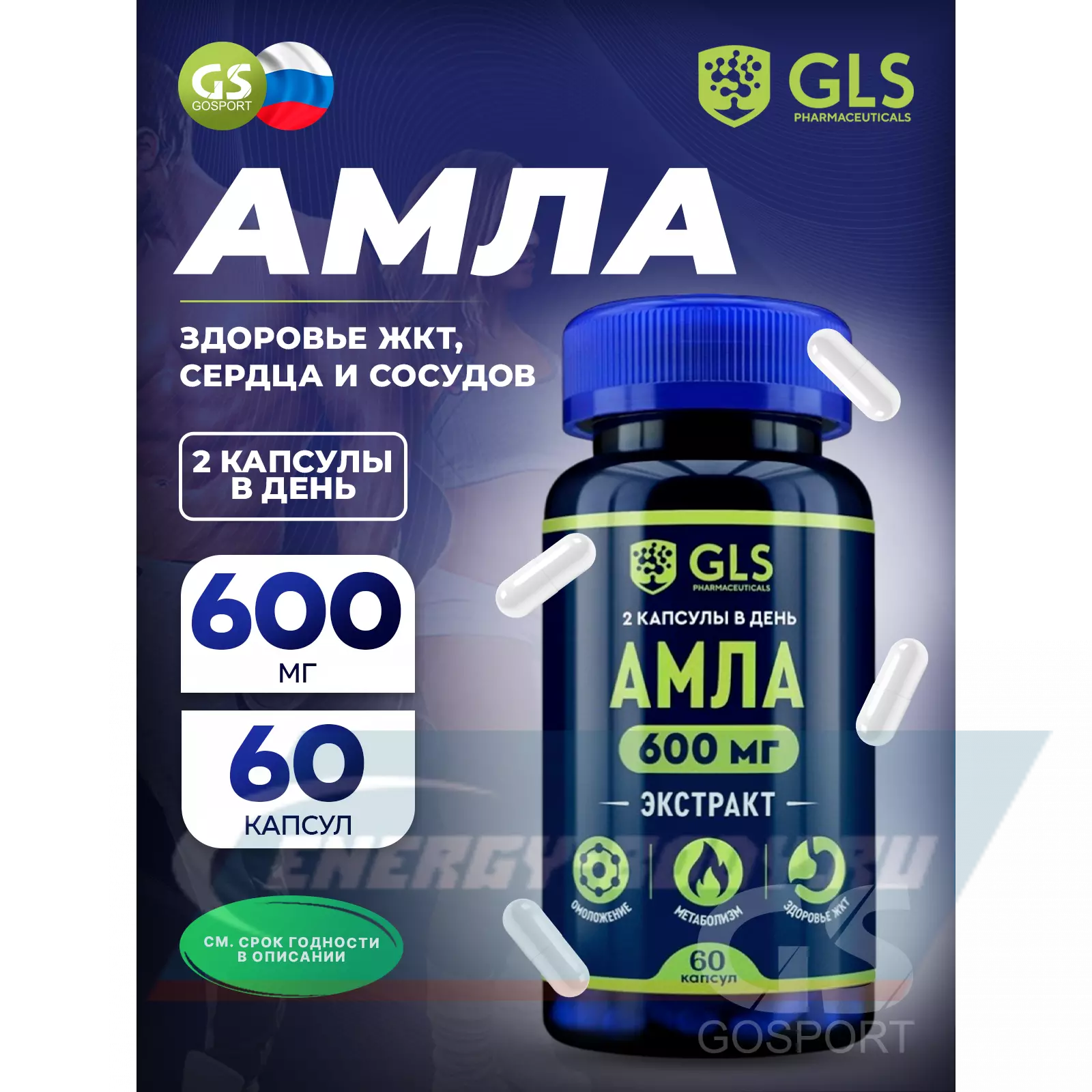 GLS pharmaceuticals Амла (экстракт амлы) 600 мг с витамином С 60 капсул — Для сердечно-сосудистой системы и мозга