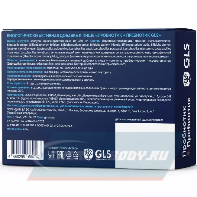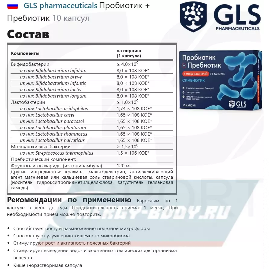 Состав GLS pharmaceuticals Пробиотик + Пребиотик