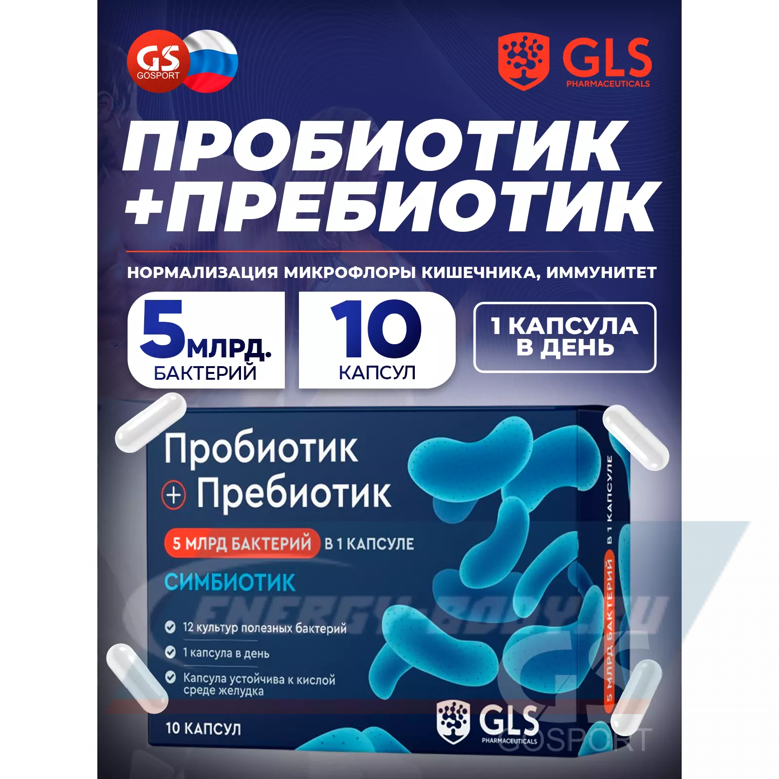 GLS pharmaceuticals Пробиотик + Пребиотик 10 капсул — для нормализации микрофлоры кишечника