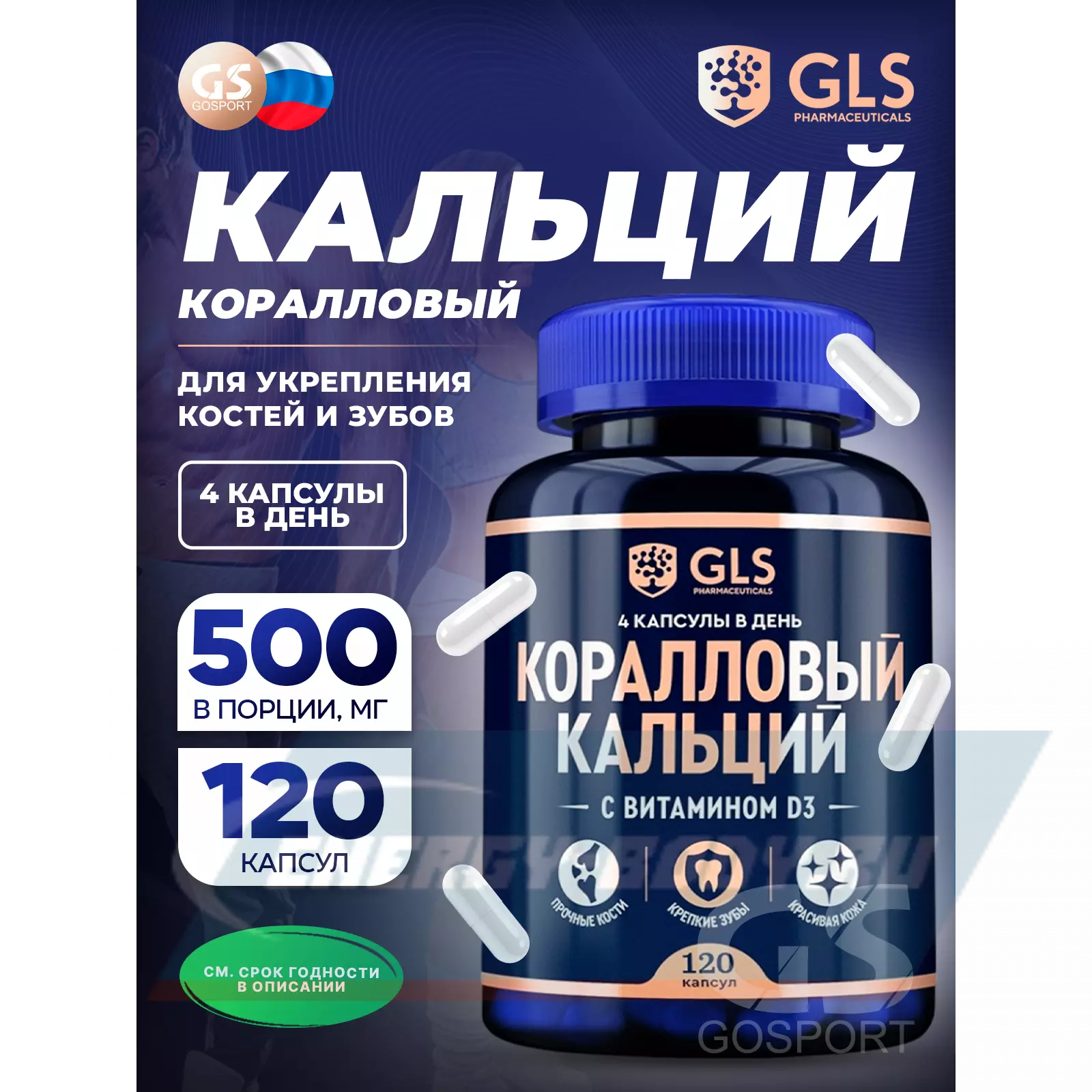 GLS pharmaceuticals Коралловый кальций с витамином D3 120 капсул — для костей, зубов и кожи