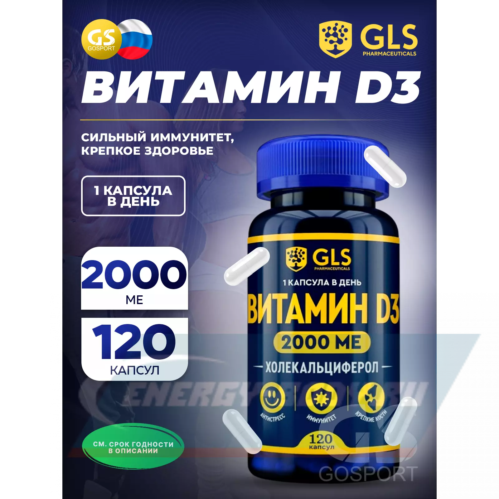 GLS pharmaceuticals Витамин D3 (холекальциферол) 2000 ME 120 капсул — для костей, иммунитета, антистресс