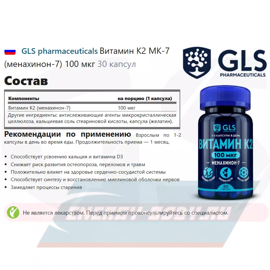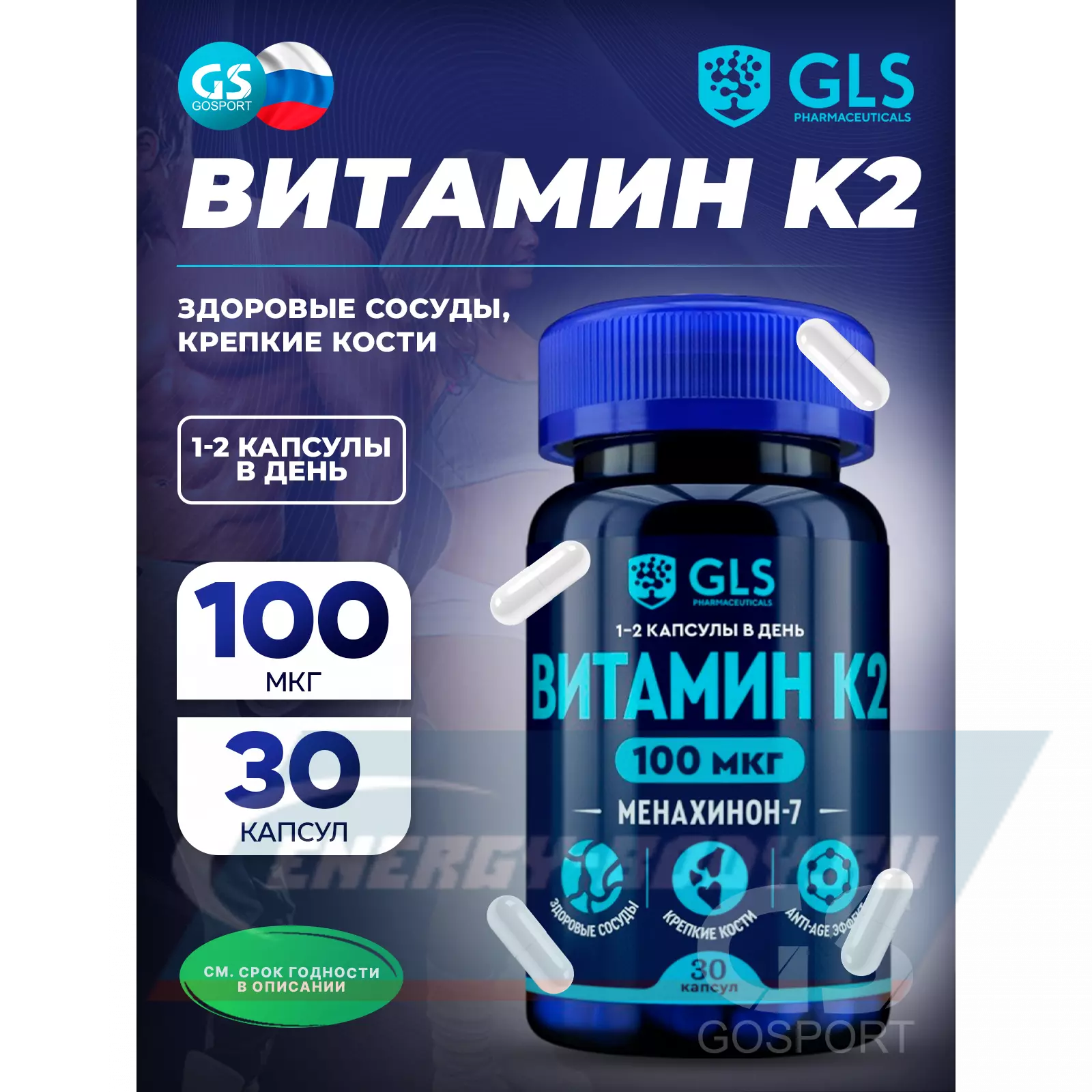 GLS pharmaceuticals Витамин К2 МК-7 (менахинон-7) 100 мкг 30 капсул — для сердечно-сосудистой системы и костей