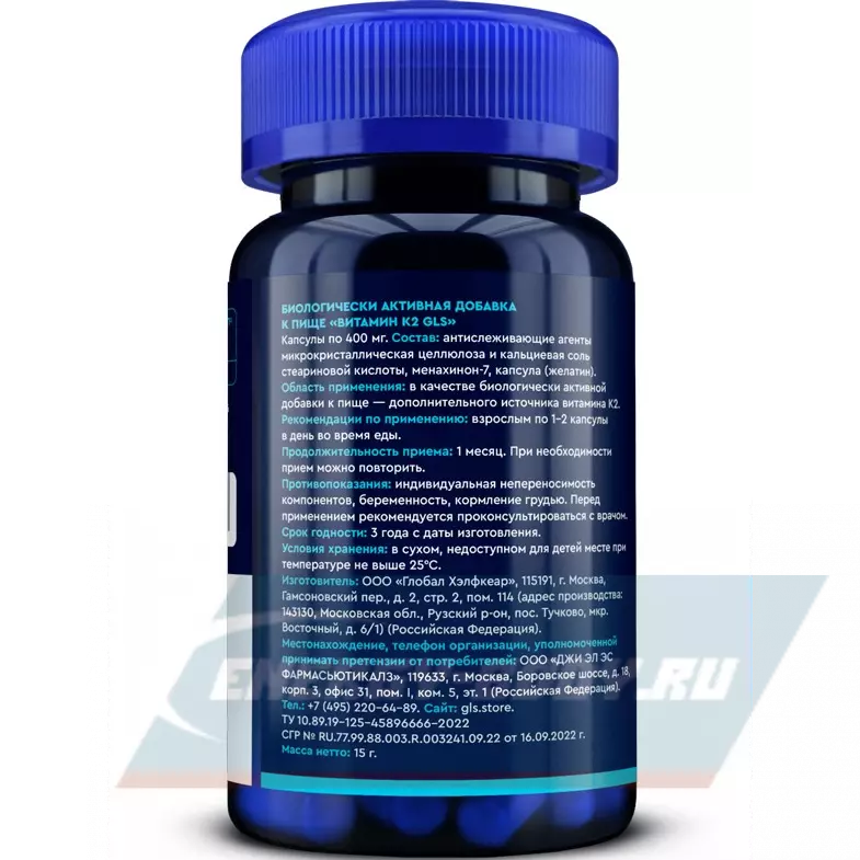 Состав GLS pharmaceuticals Витамин К2 МК-7 (менахинон-7) 100 мкг