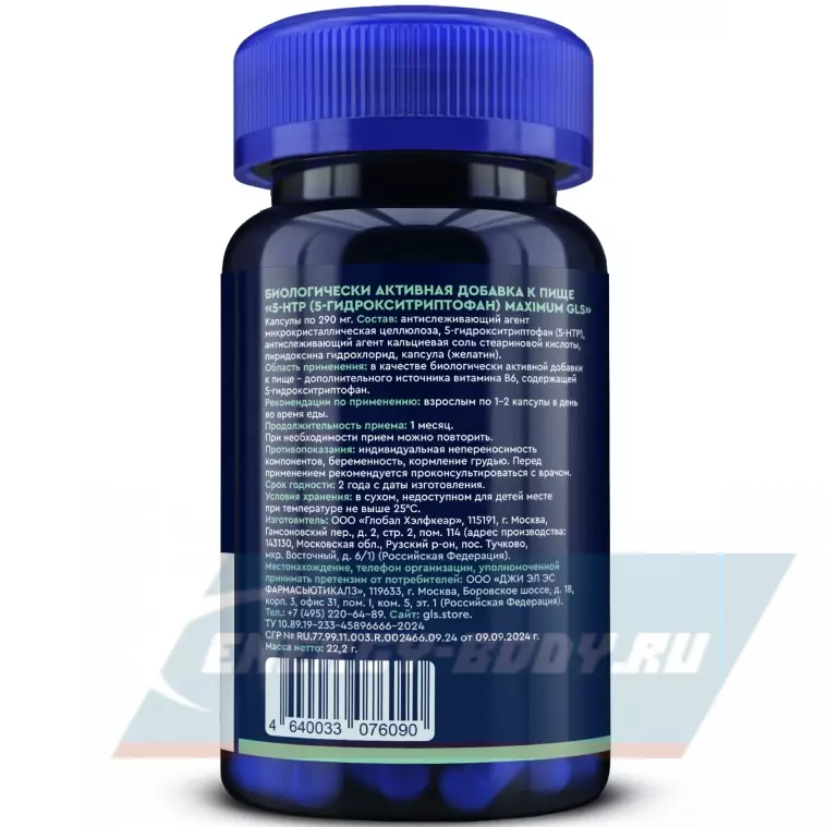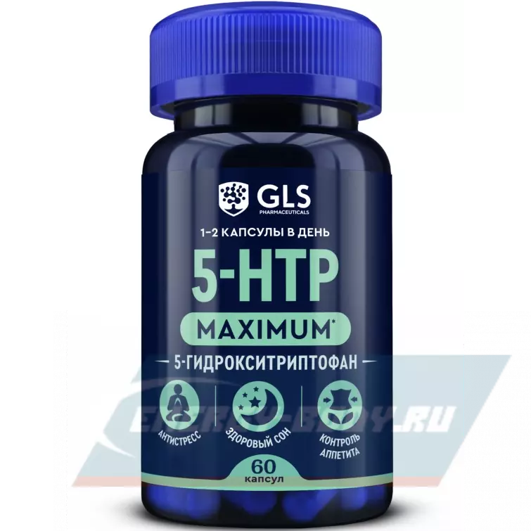 GLS pharmaceuticals 5-HTP (5-гидрокситриптофан) maximum 60 капсул — Для снижения стресса, здорового сна и контроля аппетита