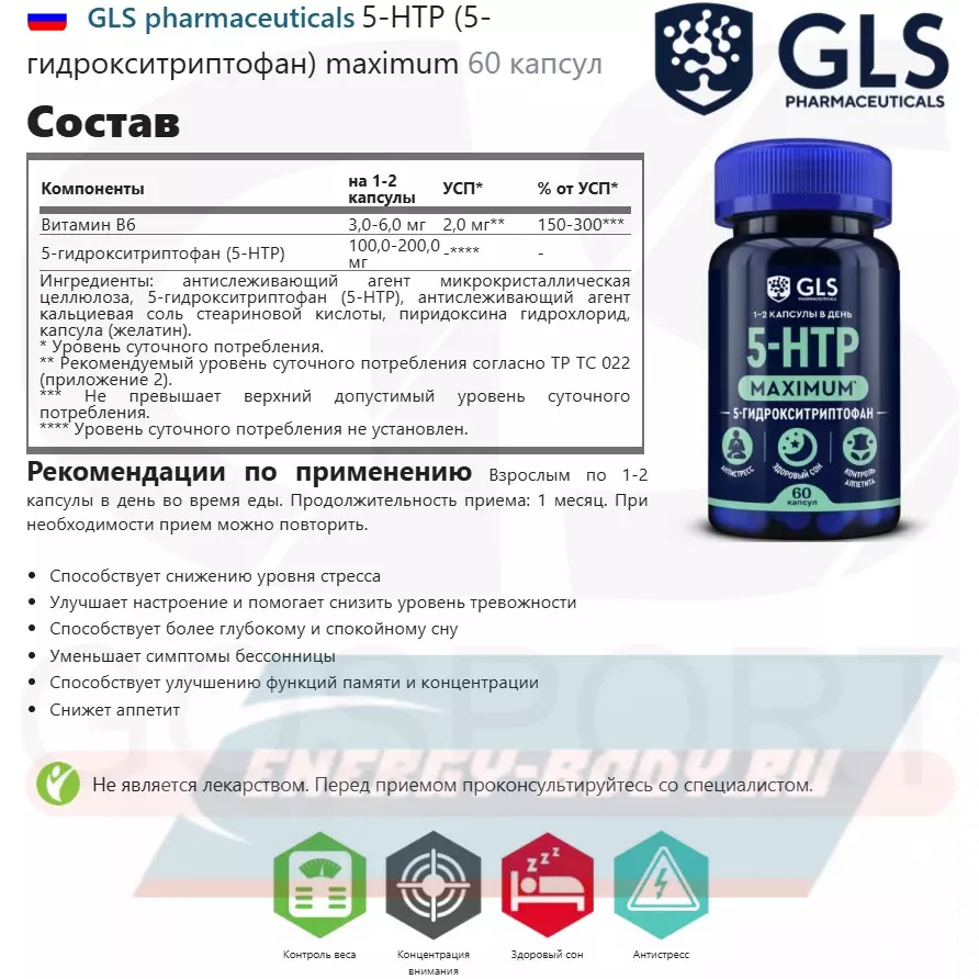 GLS pharmaceuticals 5-HTP (5-гидрокситриптофан) maximum 60 капсул  GLS pharmaceuticals 5-HTP (5-гидрокситриптофан) maximum 60 капсул  GLS pharmaceuticals 5-HTP (5-гидрокситриптофан) maximum 60 капсул  GLS pharmaceuticals 5-HTP (5-гидрокситриптофан) maximum 60 капсул  GLS pharmaceuticals 5-HTP (5-гидрокситриптофан) maximum 60 капсул