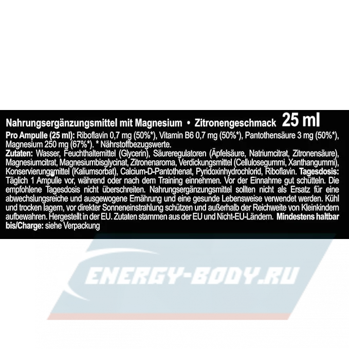 MAGNESIUM 250 мг + B6 10 x 25 мл, Лимон