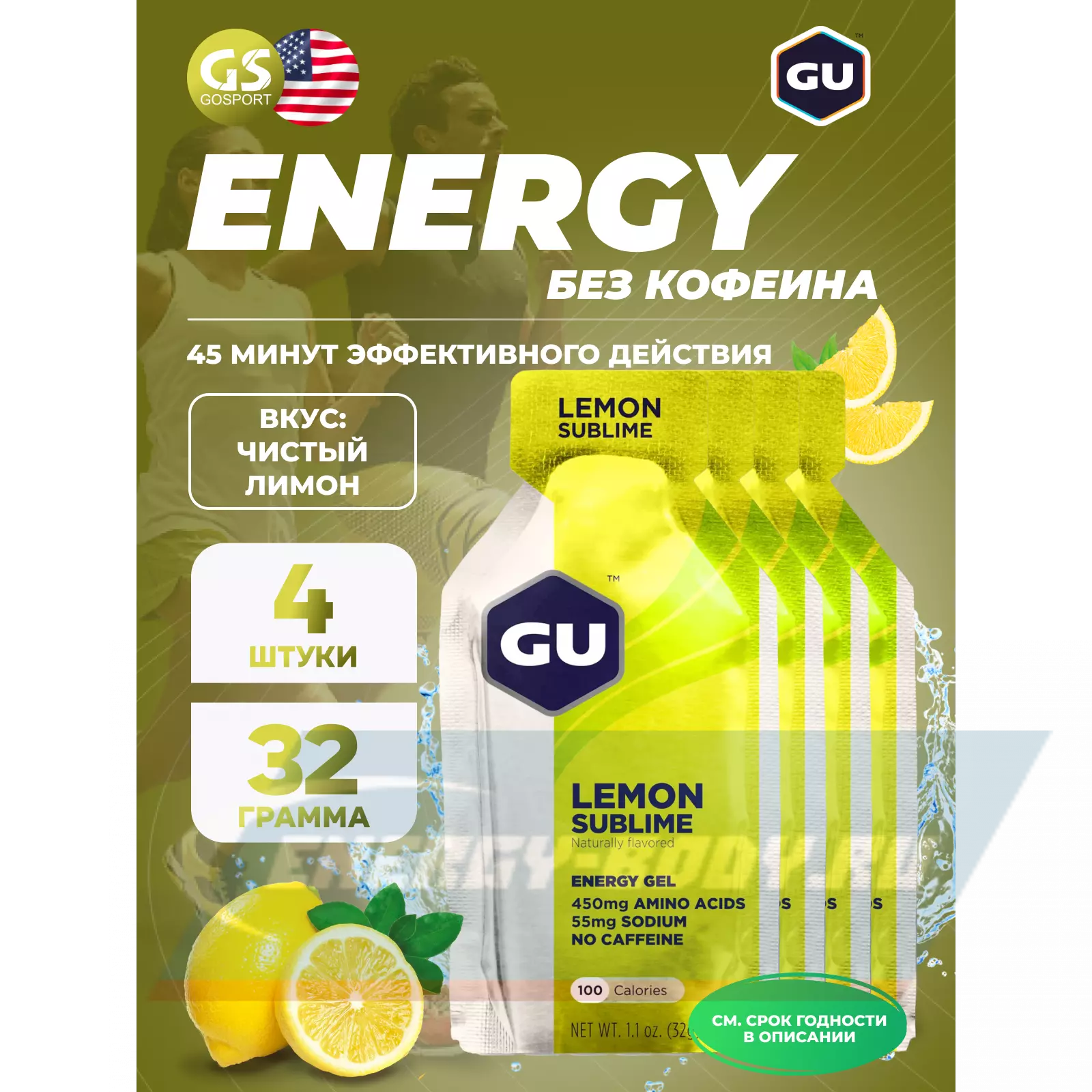 GU Energy Labs GU Original Energy Gel no caffeine 4 x 32 г, Чистый лимон — Высокая калорийность, Два вида углеводов, Лёгкий