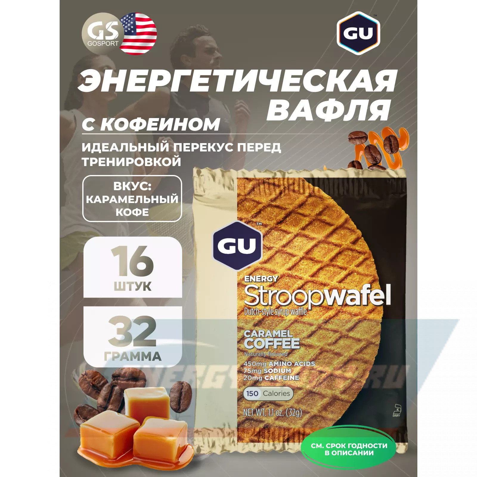 GU ENERGY STROOPWAFEL 20mg caffeine 16 x 32 г, Карамель-Кофе