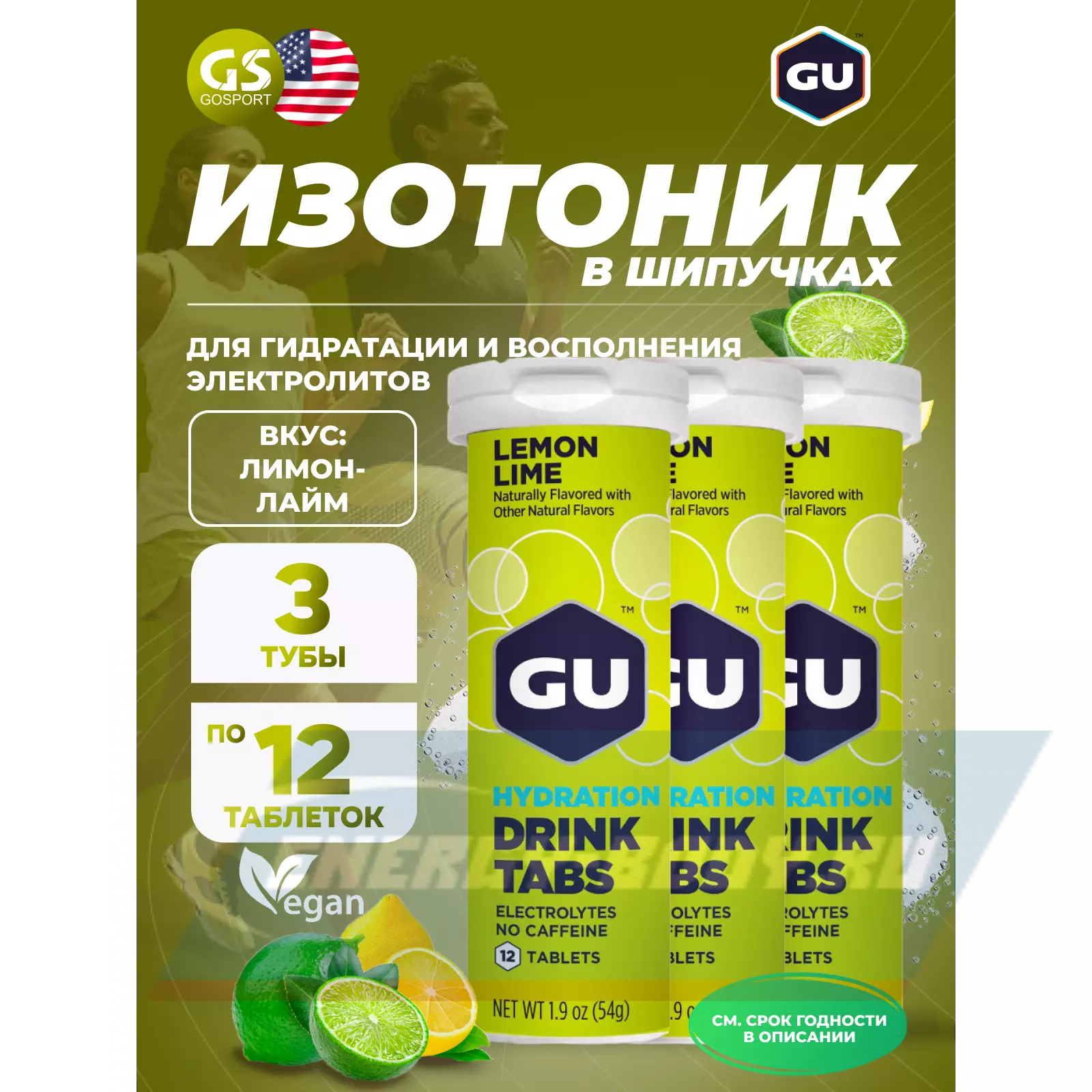 GU HYDRATION DRINK TABS 3 x 12 таб, Лимон-Лайм