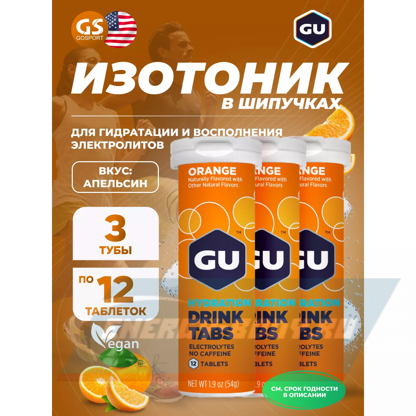 GU HYDRATION DRINK TABS 3 x 12 таб, Апельсин