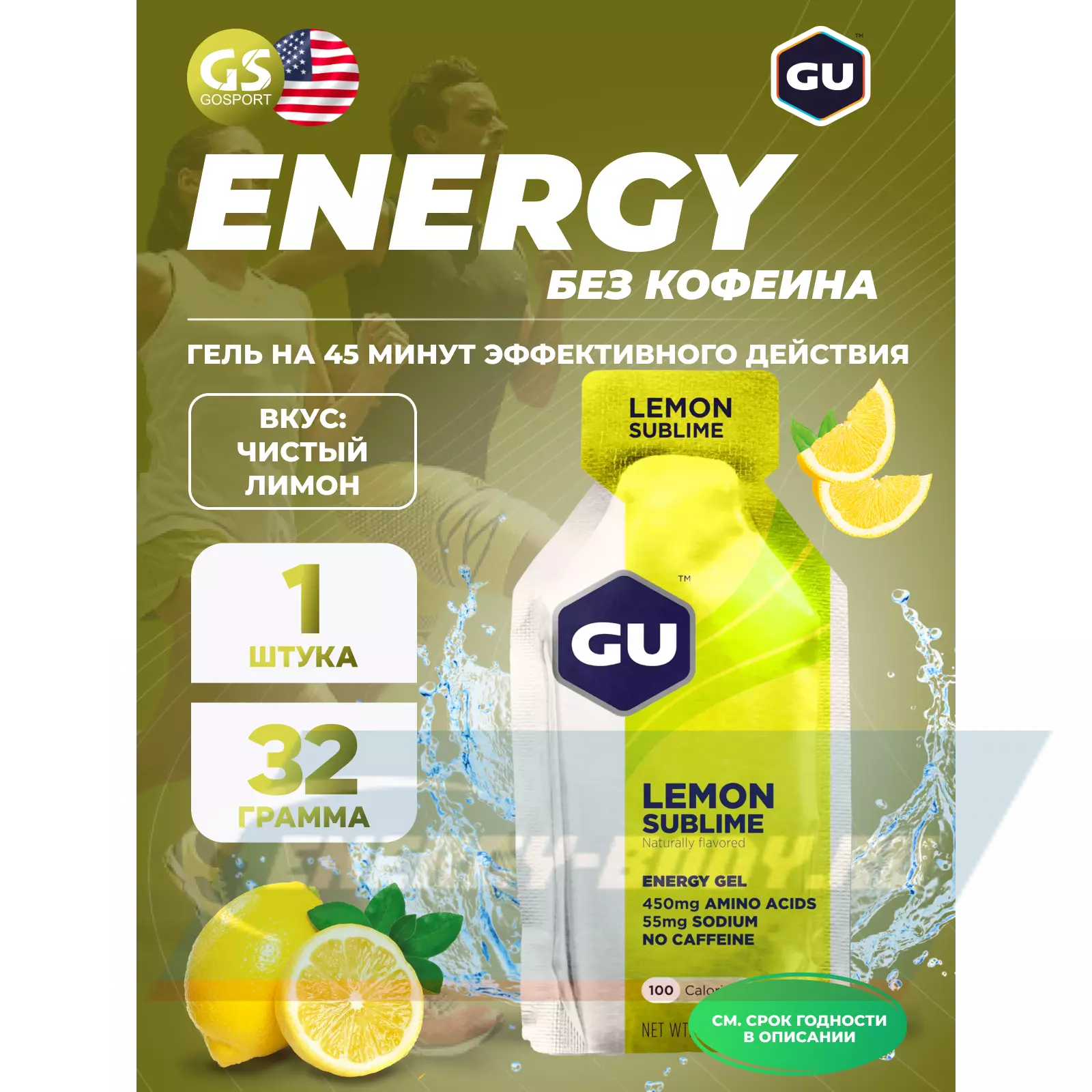 GU ENERGY GU Original Energy Gel no caffeine 32 г, Чистый лимон — Высокая калорийность, Два вида углеводов, Лёгкий