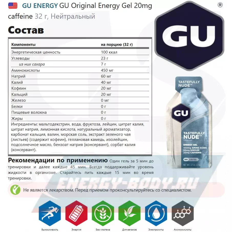 Энергетический гель GU ENERGY GU Original Energy Gel 20mg caffeine 4 x 32 г, Нейтральный Энергетический гель GU ENERGY GU Original Energy Gel 20mg caffeine 4 x 32 г, Нейтральный Энергетический гель GU ENERGY GU Original Energy Gel 20mg caffeine 4 x 32 г, Нейтральный Энергетический гель GU ENERGY GU Original Energy Gel 20mg caffeine 4 x 32 г, Нейтральный
