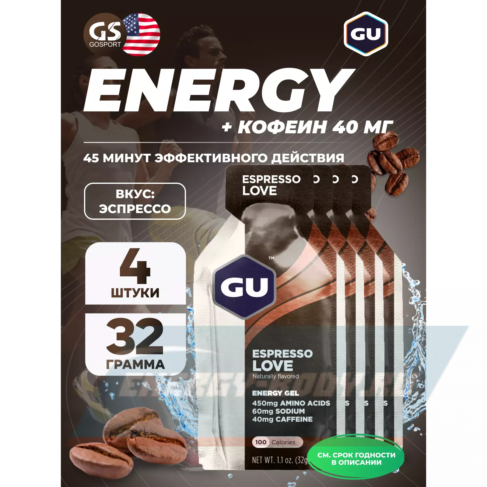 GU ENERGY GU Original Energy Gel 40mg caffeine 4 x 32 г, Эспрессо Лав