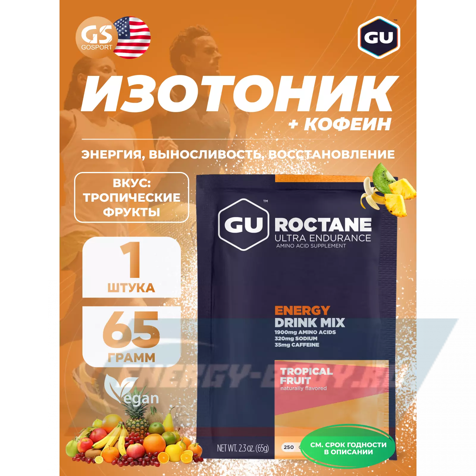 GU ROCTANE ENERGY DRINK MIX 65 г, Тропические фрукты