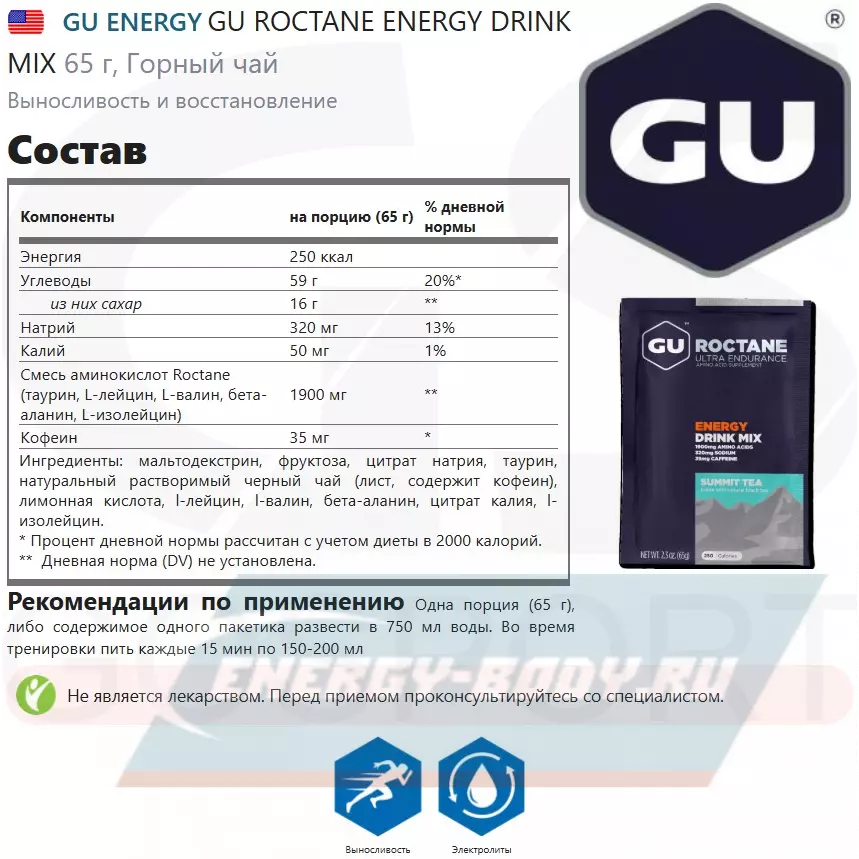 - Полное описание GU ROCTANE ENERGY DRINK MIX