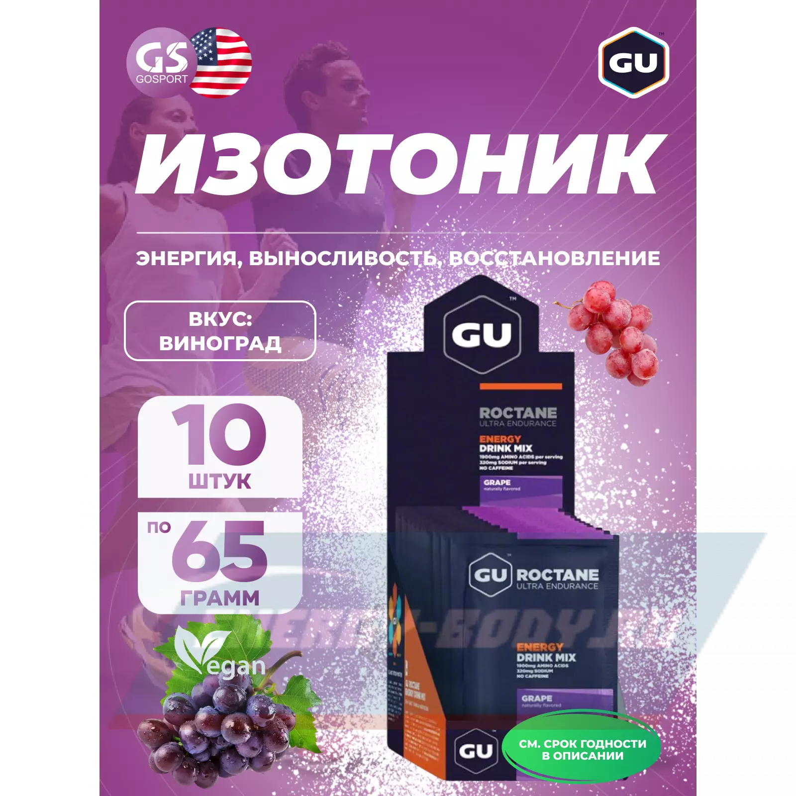 GU ROCTANE ENERGY DRINK MIX 10 x 65 г, Виноград