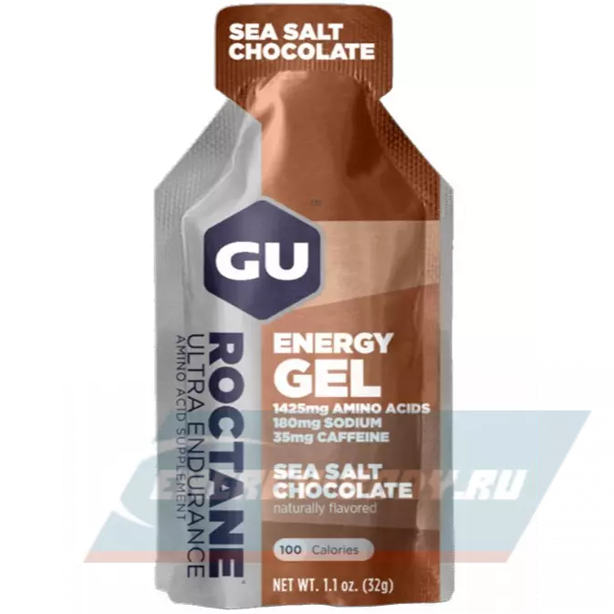 GU ENERGY GU ROCTANE Energy Gel 35mg caffeine 24 x 32 г, Шоколад-Морская соль — Для выносливости и водно-солевого баланса