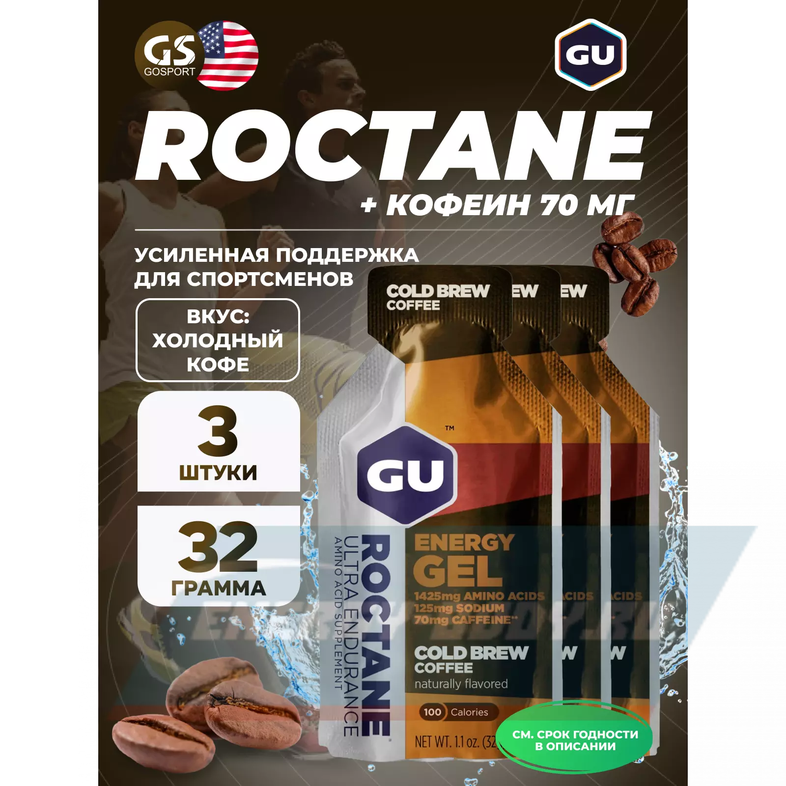 GU ENERGY GU ROCTANE Energy Gel 70mg caffeine 3 x 32 г, Холодный кофе — Для выносливости и водно-солевого баланса