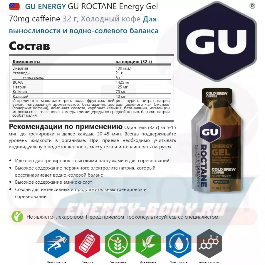 - Полное описание GU ROCTANE Energy Gel 70mg caffeine